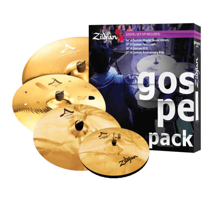 The rhythmic tones and strong vocals of Gospel music need a bright, cutting sound that is both shimmering and able to be heard. The Zildjian Gospel Pack features a handpicked selection of Zildjian A Custom Cymbals that are just the right amount of brightness and sweetness that Gospel music demands. This set includes: